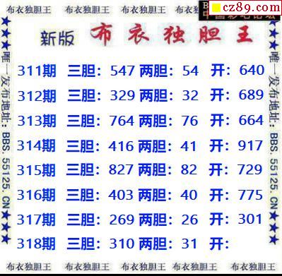 新版布衣独胆王2025318期3d图谜